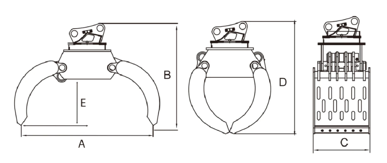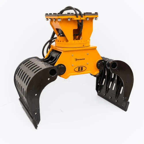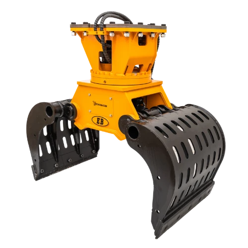Rotacija 360° omogoča popolno usmerjanje grabeža brez dodatnega premikanja bagra, kar skrajša delovne cikle in poveča natančnost pri manipulaciji materiala. Sila pritiska 4 t zagotavlja zanesljiv oprijem pri pobiranju lesa, rastlinskih ostankov, kamnov ali mešanega odpadnega materiala. Hidravlični cilinder deluje pri tlaku 110 do 140 bar in pretoku 5 do 15 l/min, enak razpon velja za rotator, kar omogoča enakomerno, gladko in nadzorovano delovanje brez sunkovitosti.