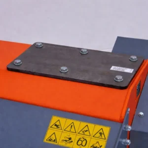 Konstrukcija je prilagojena delu na neravnem terenu, kjer prihaja do večjih mehanskih obremenitev. Serijsko je mulčer opremljen s ploščadjo za vpetje in zadnjim valjem, ki stabilizira višino reza ter izboljša drsenje po podlagi. Verižna zaščitna zavesa zmanjšuje razmetavanje materiala in povečuje varnost pri delu, kar je posebej pomembno na gradbiščih in ob prometnih površinah.