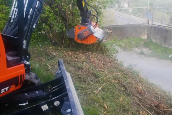 Delovna širina 700 mm omogoča dobro kontrolo nad delovnim območjem in učinkovito napredovanje pri čiščenju zaraščenih površin. Masa 120 kg zagotavlja stabilno delovanje brez pretiranega obremenjevanja roke bagra. Direktni prenos moči omogoča optimalen izkoristek hidravličnega sistema ter enakomerno vrtenje rotorja tudi pri večjih obremenitvah. Za delovanje potrebuje pretok olja 25–40 l/min in tlak 170–250 bar, kar ustreza hidravličnim sistemom bagrov v tem razredu.