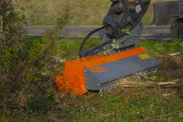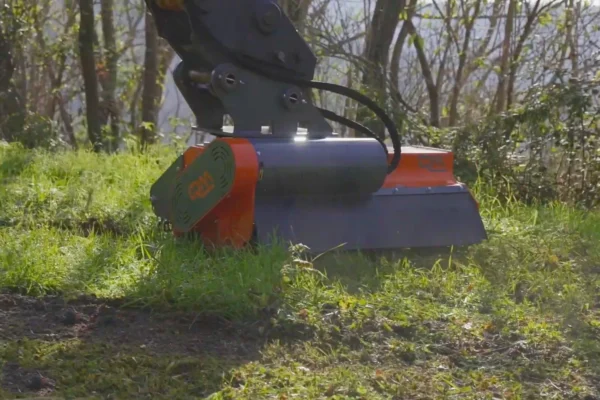 Delovna širina 1100 mm omogoča učinkovito obdelavo večjih površin ob hkratni okretnosti na omejenih deloviščih. Skupna masa 395 kg zagotavlja stabilno delovanje na roki bagra in miren tek rotorja tudi pri večjih obremenitvah. Ohišje je izdelano iz obrabno odpornega jekla ter dodatno ojačano z okvirjem z dvojnim votlim dnom, kar povečuje odpornost pri delu na kamnitem in neurejenem terenu. Zadnji tlačni valj stabilizira višino reza in izboljša stik s podlago, ohišje pa omogoča mulčanje levo ali desno.