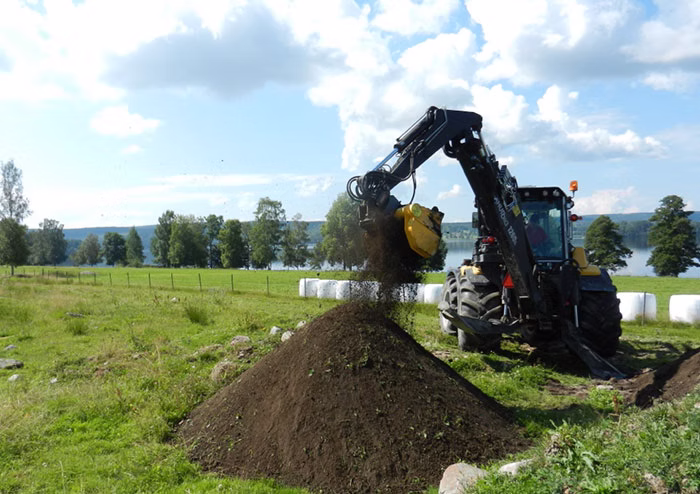 S širino 800 mm omogoča učinkovito obdelavo večje delovne površine v enem prehodu, hkrati pa ohranja dobro vodljivost tudi na omejenih ali delno dostopnih območjih. Takšno razmerje med širino in kompaktnostjo omogoča optimalno uporabo pri pripravi podlag, zasipavanju jarkov, ločevanju kamnov iz zemlje ali obdelavi komunalnih nasutij.