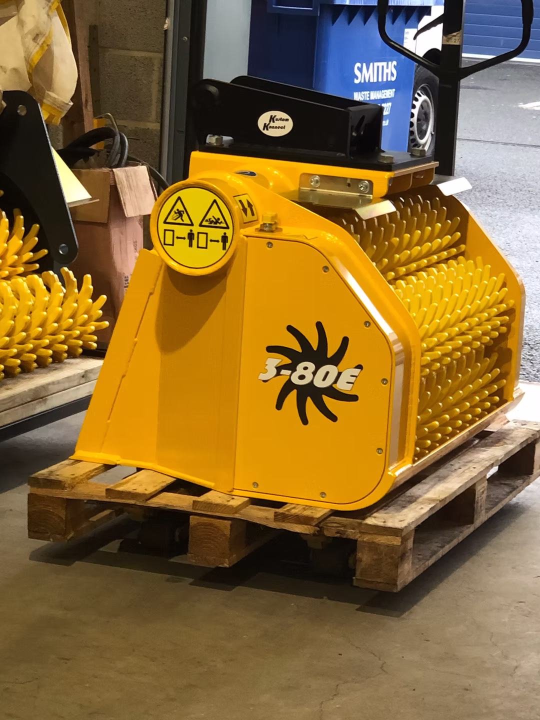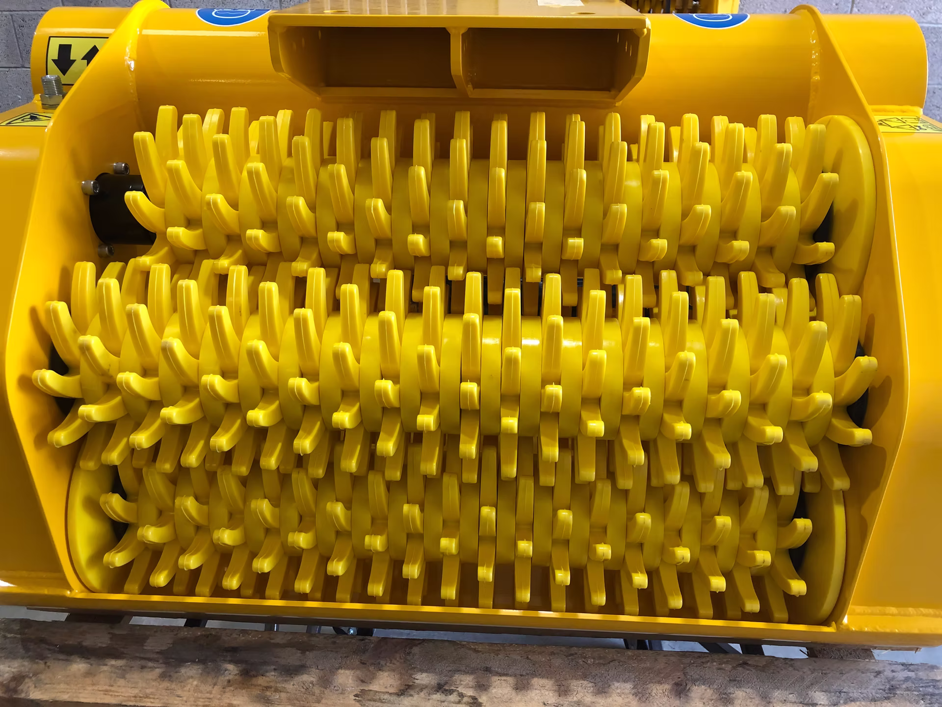 Sistem treh rotacijskih valjev zagotavlja enakomerno fragmentacijo materiala in stabilno delovanje tudi pri neenakomernih obremenitvah. Na voljo so različne kalibracije – 10, 15, 20 ali 40 mm – kar omogoča prilagoditev granulaciji glede na zahteve projekta. Zajemalna odprtina 430 × 800 mm omogoča nemoten vstop materiala, prostornina 0,18 m³ pa zagotavlja zadosten zajem za kontinuirano delo brez pogostih ponovitev cikla. Teža 260 kg prispeva k stabilnosti priključka in mirnemu teku valjev.