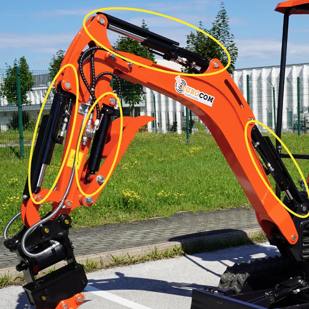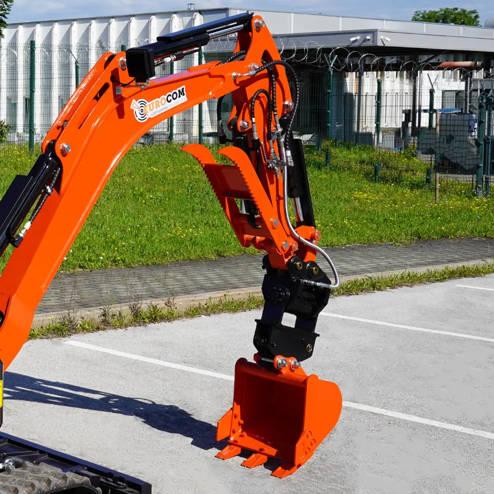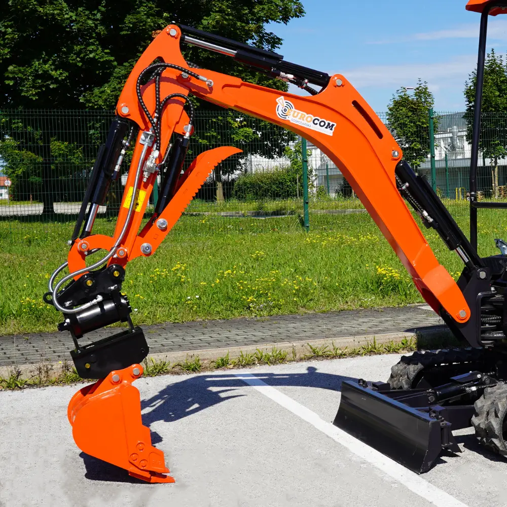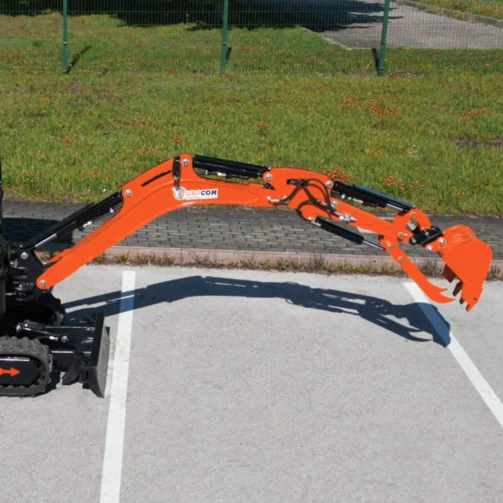 Mini bager K18 je kompakten gradbeni stroj, ki omogoča učinkovito delo na ozkih in težko dostopnih terenih. Kljub svoji majhnosti zagotavlja močno izkopno zmogljivost in natančen nadzor. Je dobra izbira za delo na kmetiji, v gozdu, pri izkopavanju temeljev, urejanje vrtov in izkopavanje jarkov. Opremljen je z Kubota motorjem in različnimi priključki, kar omogoča izkopavanje terena, lukenj, jarkov, ravnanje površin ter nalaganje zemlje in peska. Serijska oprema vključuje servo joystick, zajemalke različnih velikosti, hidravlično nagibno planirko, klešče in kladivo za dodatno funkcionalnost, hitro menjava za enostavno menjavanje orodij, razširitvene gosenice za večjo stabilnost ter swing funkcijo za večjo fleksibilnost pri delu. Mini bager K18 ima dodan power tilt za fleksibilno delovanje vseh priključkov na delovni roki za 180°.