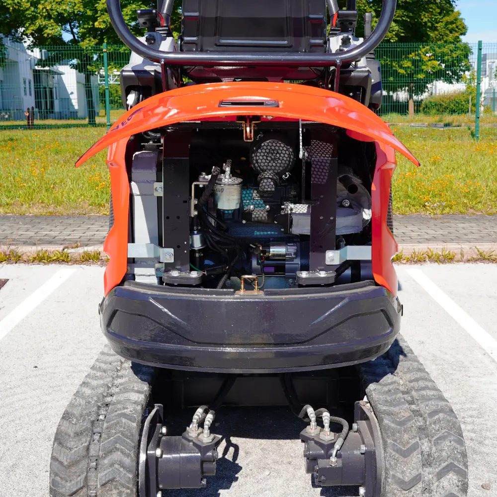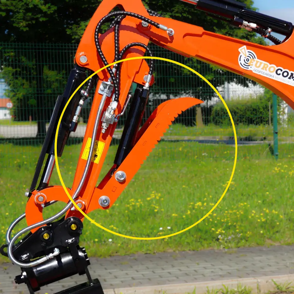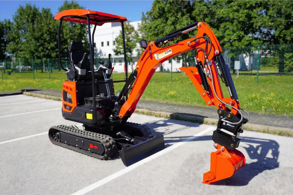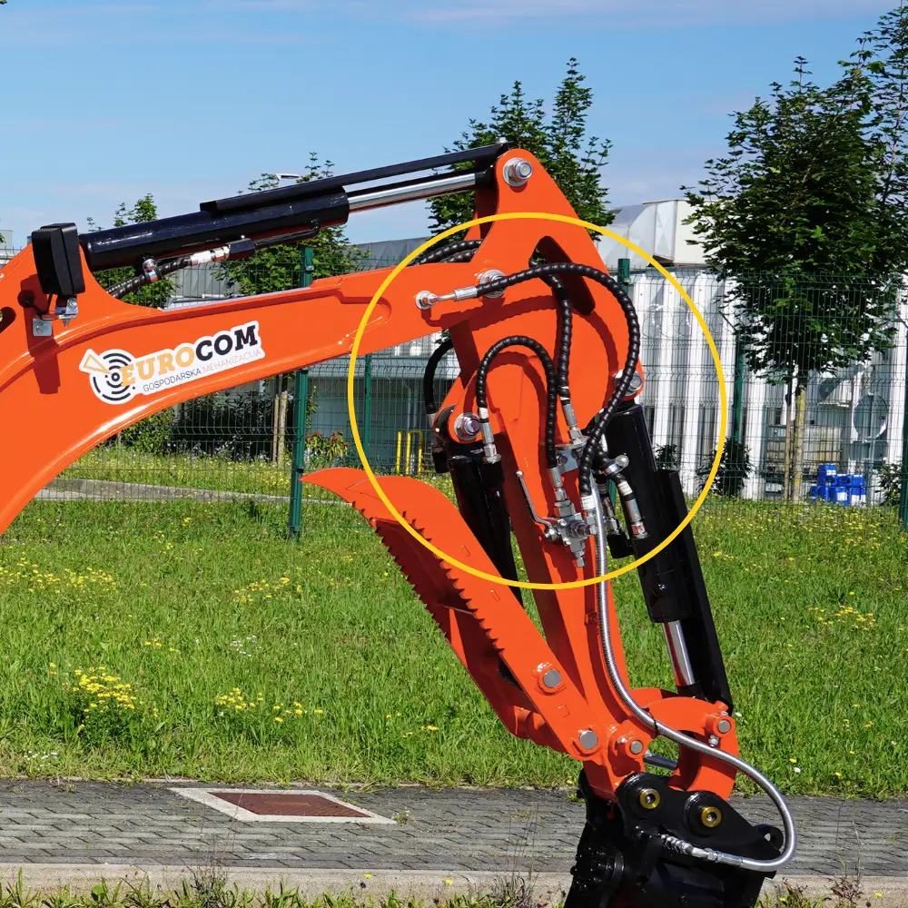 Mini bager K18 je kompakten gradbeni stroj, ki omogoča učinkovito delo na ozkih in težko dostopnih terenih. Kljub svoji majhnosti zagotavlja močno izkopno zmogljivost in natančen nadzor. Je dobra izbira za delo na kmetiji, v gozdu, pri izkopavanju temeljev, urejanje vrtov in izkopavanje jarkov. Opremljen je z Kubota motorjem in različnimi priključki, kar omogoča izkopavanje terena, lukenj, jarkov, ravnanje površin ter nalaganje zemlje in peska. Serijska oprema vključuje servo joystick, zajemalke različnih velikosti, hidravlično nagibno planirko, klešče in kladivo za dodatno funkcionalnost, hitro menjava za enostavno menjavanje orodij, razširitvene gosenice za večjo stabilnost ter swing funkcijo za večjo fleksibilnost pri delu. Mini bager K18 ima dodan power tilt za fleksibilno delovanje vseh priključkov na delovni roki za 180°.
